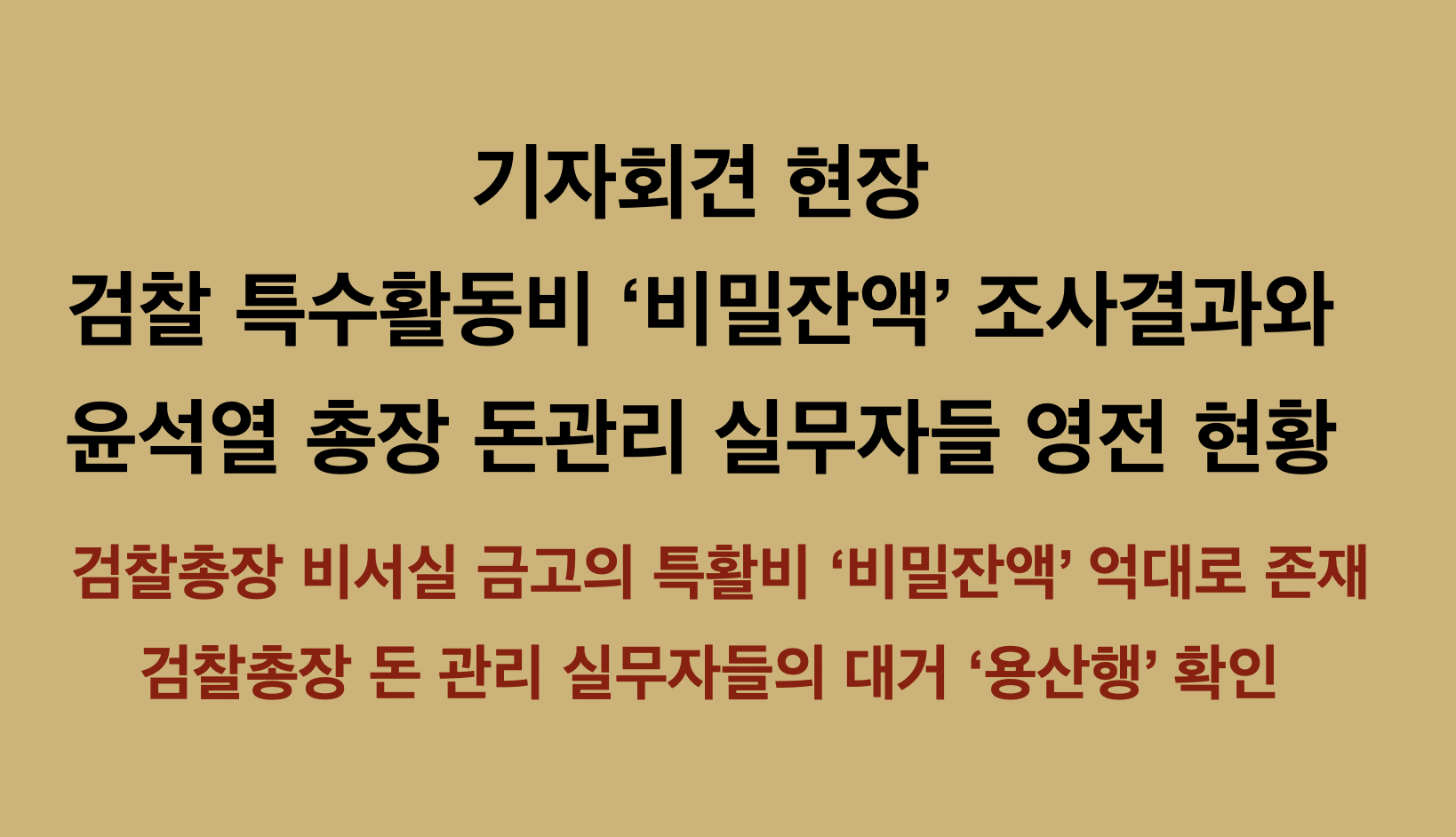 | [기자회견현장] 대검 특활비 간접강제 신청 및 A지청 등 다수 오남용 사례 발표 (0) | 2023.10.12 |