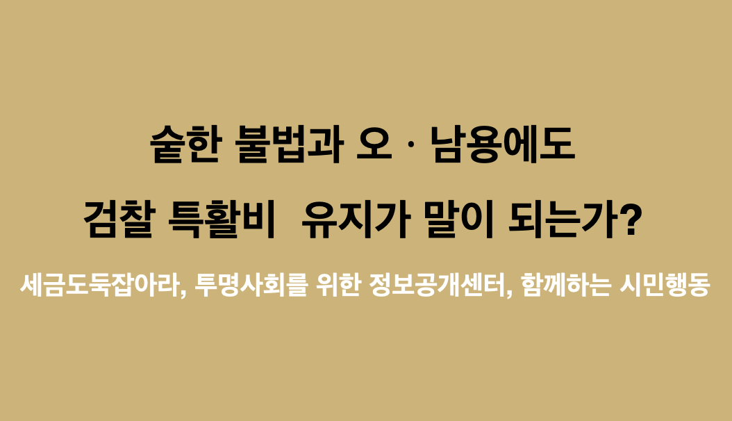 기밀수사에 사용되어야 할 검찰 특수활동비가 실제로는 기밀수사와 무관한 용도로 사용되었고, 숱한 불법과 세금오ㆍ남용이 드러난 상황인데도 대부분의 검찰특수활동비가 유지된 것이다.